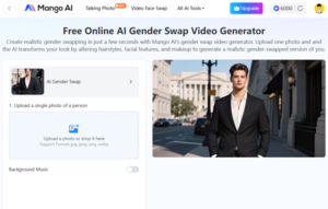 Mango AI offers an AI gender swap tool that alters a person's gender appearance from male to female or vice versa in generated videos.
