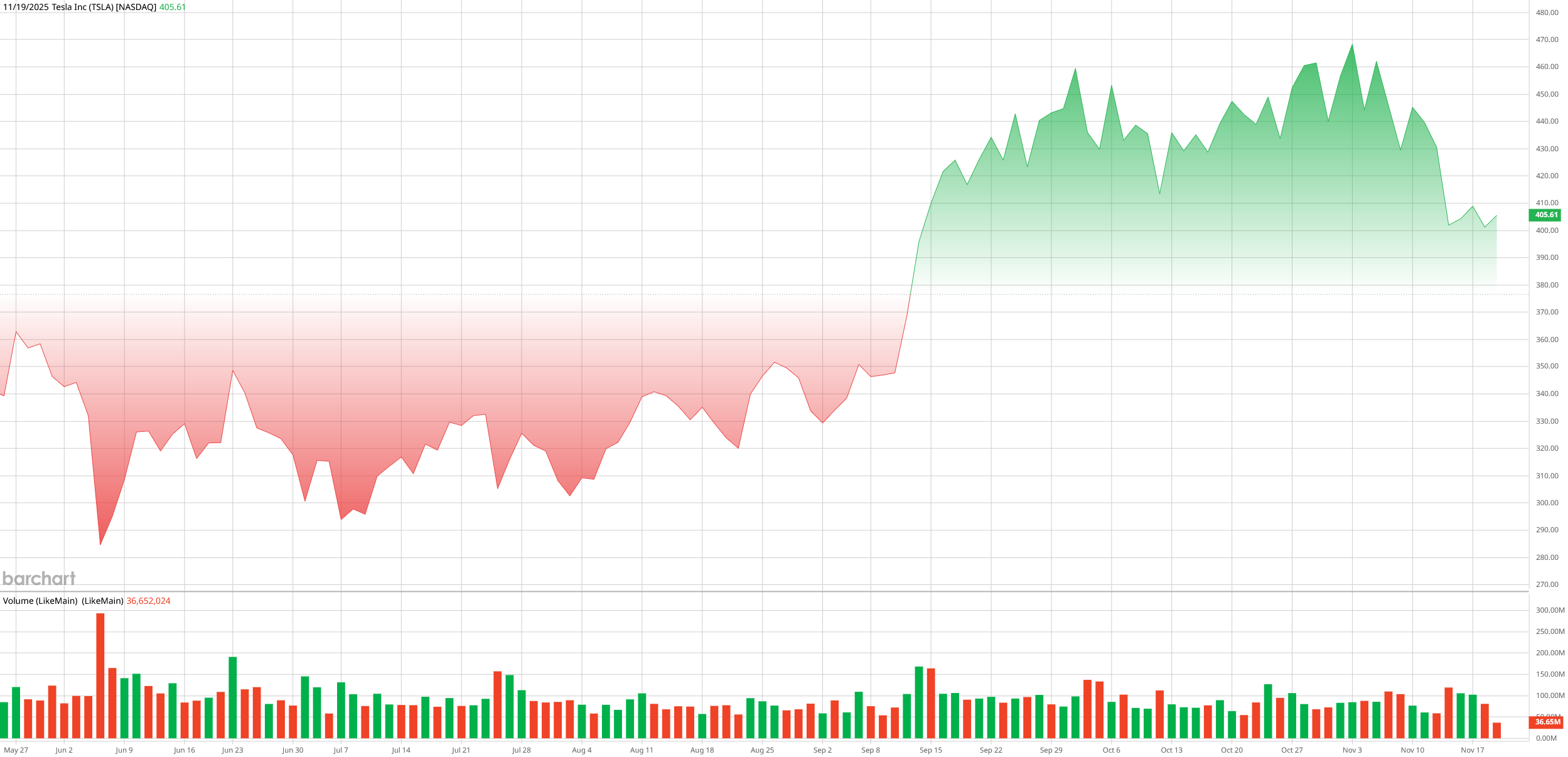 Wall Street seems divided on Tesla's prospects. Morgan Stanley reiterated an “Overweight” rating with a $410 price target. The team highlights Tesla’s third-quarter delivery beat and sees long-term upside if AI and robotics initiatives succeed, though they acknowledge the stock currently trades at a P/E of 272x above their fair-value model.