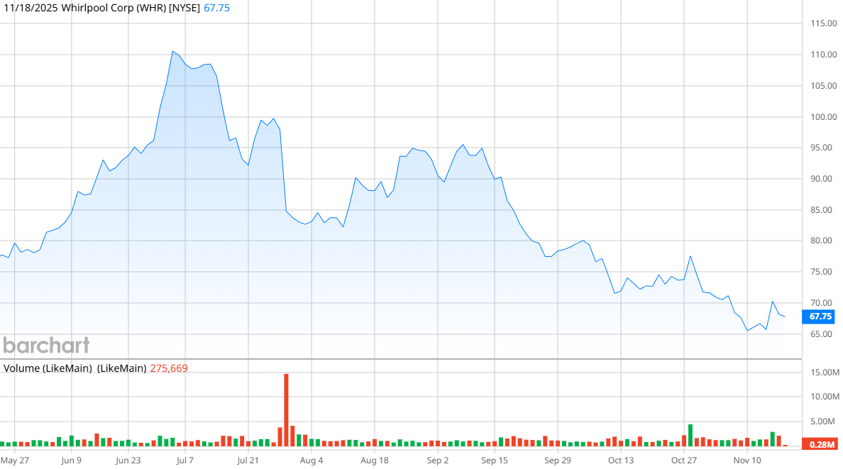 Shares of Whirlpool stock are down 40% this year, continuing its trend of losses in recent years. Its performance is far below that of the S&P 500 Index ($SPX) , which has achieved a 12.51% gain this year, as well as the S&P 500 Consumer Discretionary Select Sector SPDR Fund (XLY), which remains flat in 2025.
