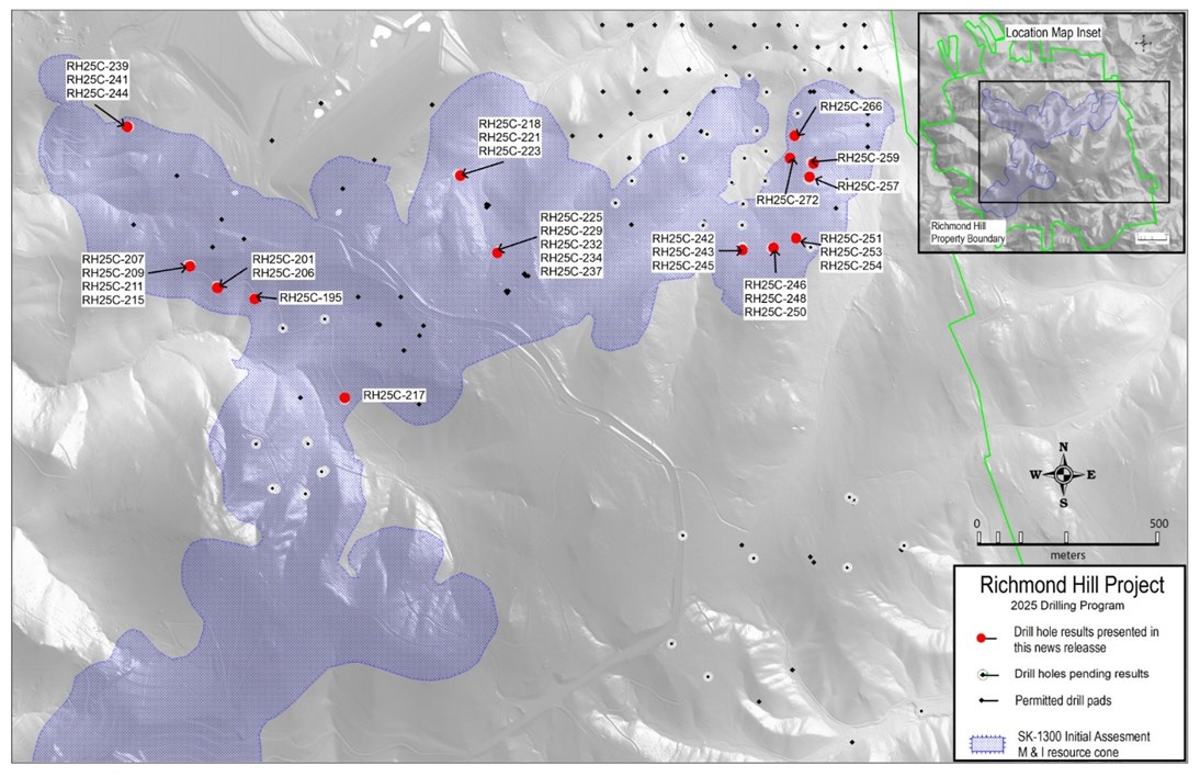Lead, South Dakota--(Newsfile Corp. - October 16, 2025) - Dakota Gold Corp. (NYSE American: DC) ("Dakota Gold" or the "Company") is pleased to announce assay results from a further 32 infill and metallurgical drill holes from its ongoing 2025 campaign for the Richmond Hill Oxide Heap Leach Gold Project ("Richmond Hill" or the "Project"). Drilling continues to intercept high-grade gold in the northern Project area supporting the Company's plan to initiate the first years of mining in the north. Dakota Gold currently has two drills operating at Richmond Hill and the Company expects to drill 27,500 meters (~90,000 feet) for the 2025 campaign.
