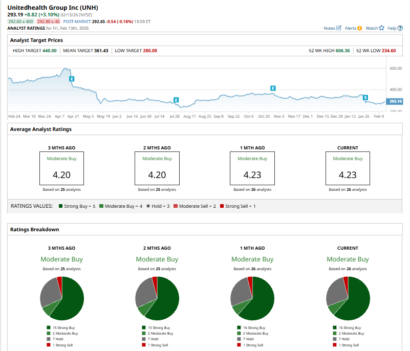 The mean price target of $361.43 represents a 19.6% premium to UNH’s current price levels. The Street-high price target of $440 suggests an ambitious upside potential of 35.7%.