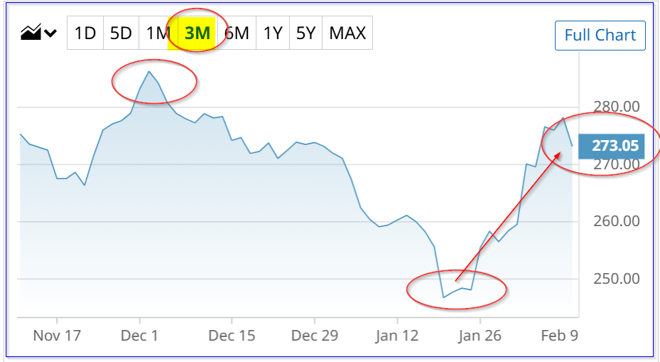 AAPL is down to $271.83 in midday trading on Monday, Feb. 9. However, that is up from a recent trough of $246.70 on Jan. 20. That was before its Jan. 29 release of fiscal Q1 results ending Dec. 27, 2025.