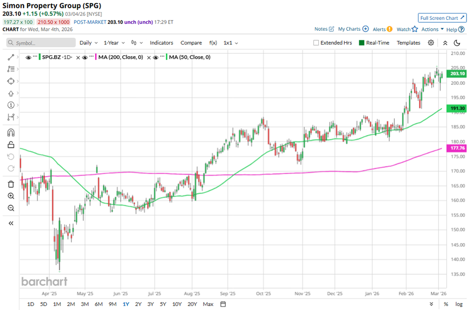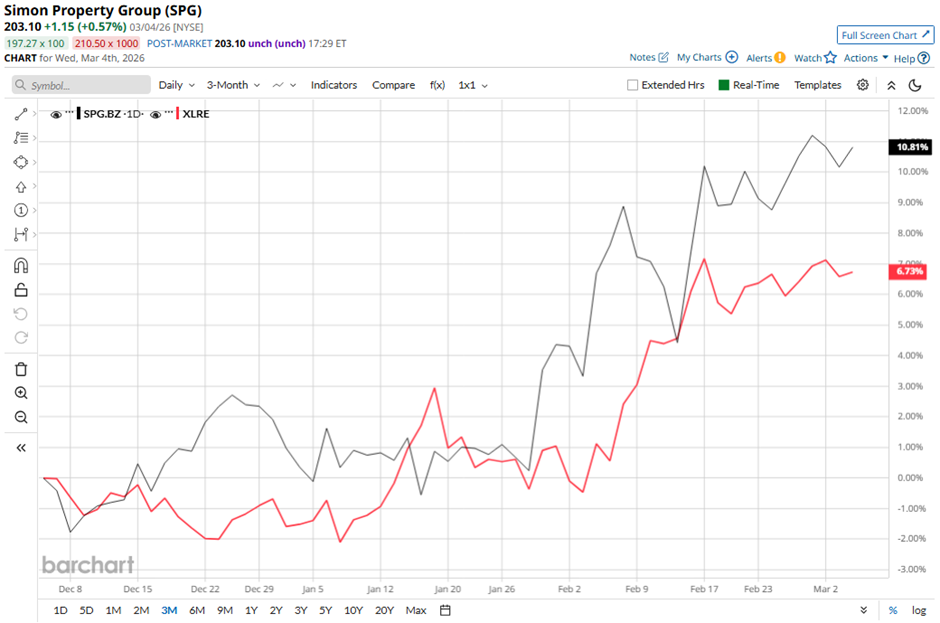 Shares of the REIT have declined marginally from its 52-week high of $205.12. SPG stock is up 10.8% over the past three months, outperforming the State Street Real Estate Select Sector SPDR ETF's (XLRE) 6.7% return in the same period.